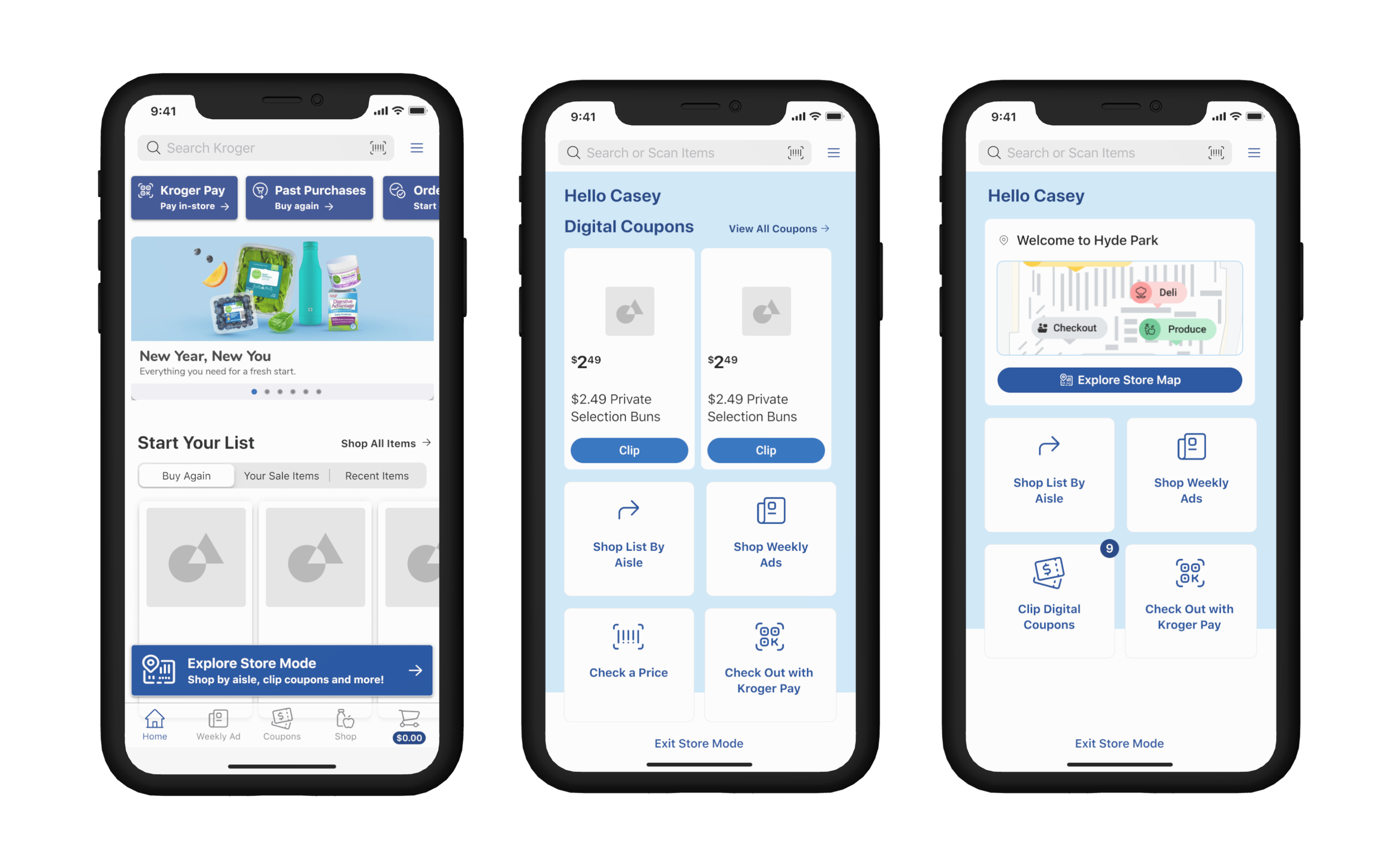 Store Mode is a digital tool meant to aid in-store shoppers on their shopping journeys. It has a simple, streamlined UI to quickly assist shoppers who may need to find a product in-store, shop their list by aisle or access their digital coupons.